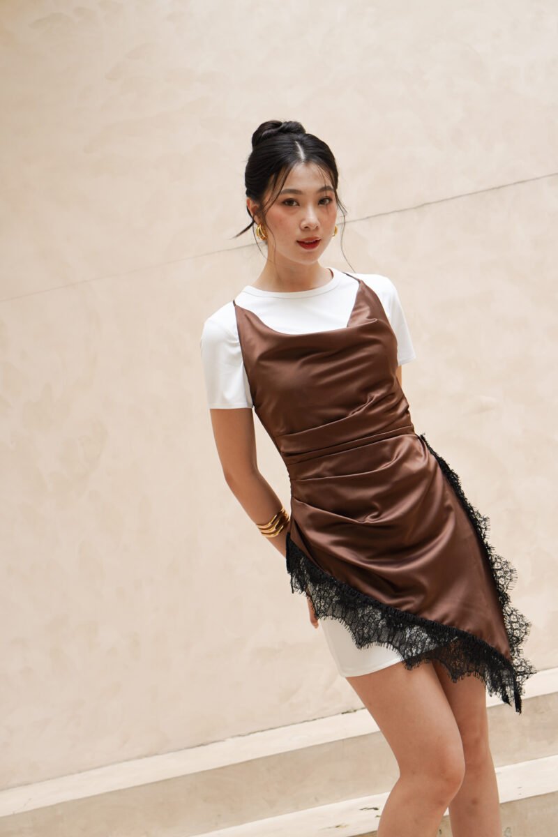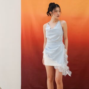 This top features a feminine and elegant silhouette, crafted from premium Satin Maxmara fabric known for its smooth texture, beautiful drape, and soft luxurious sheen. It is available in two color options: Sky Blue, which gives a soft, fresh, and graceful impression, and Espresso, which appears bolder, warmer, and more sophisticated.