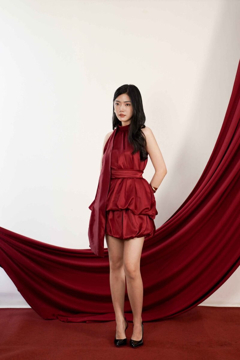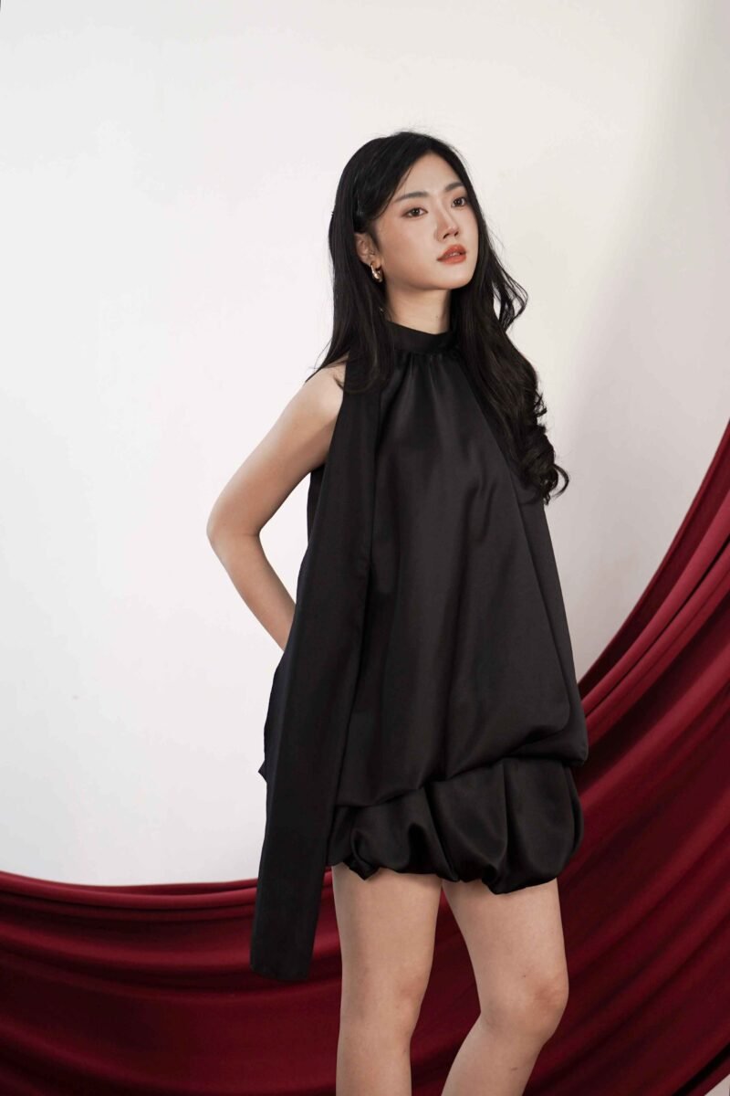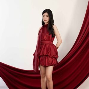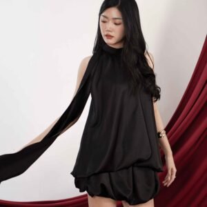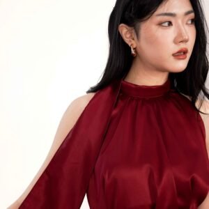 This top is crafted from premium satin fabric with a subtle sheen and a soft texture, creating a luxurious and exclusive feel when worn. Featuring a unique balloon design, it presents a modern yet feminine voluminous silhouette. Available in two color options: a bold, statement red and a classic, timeless black.