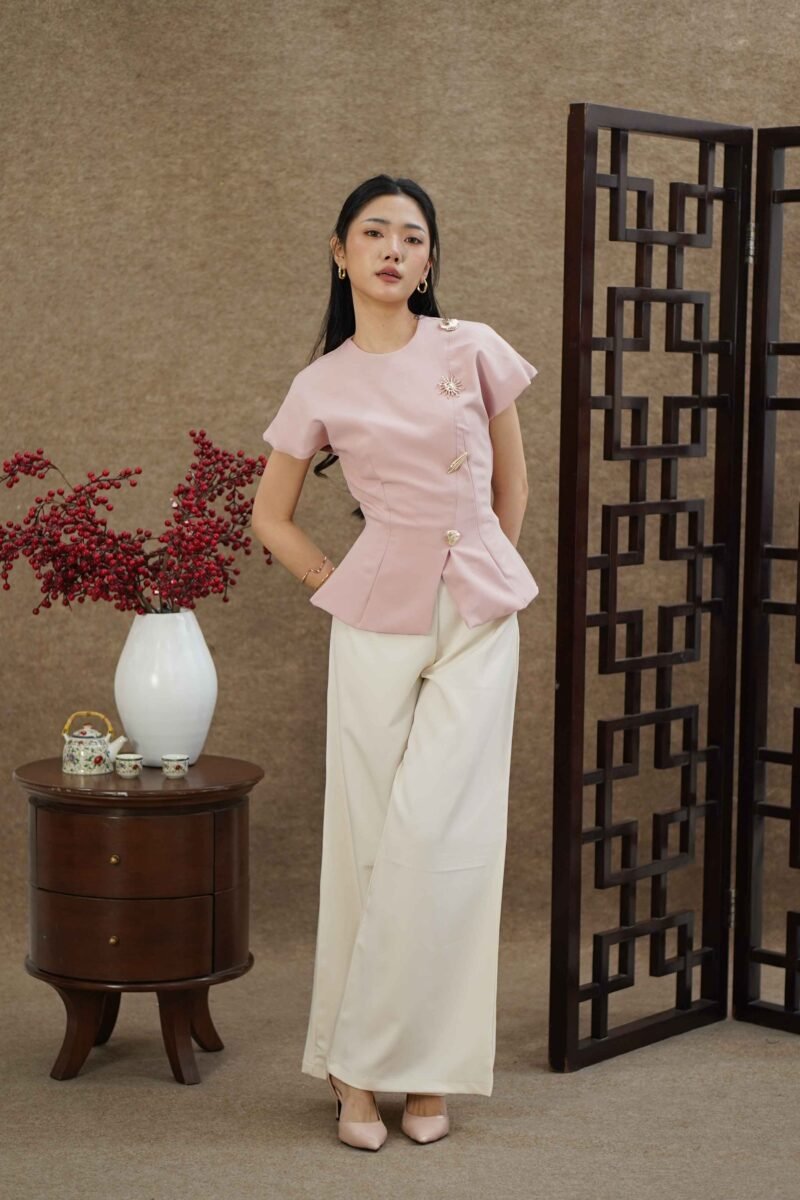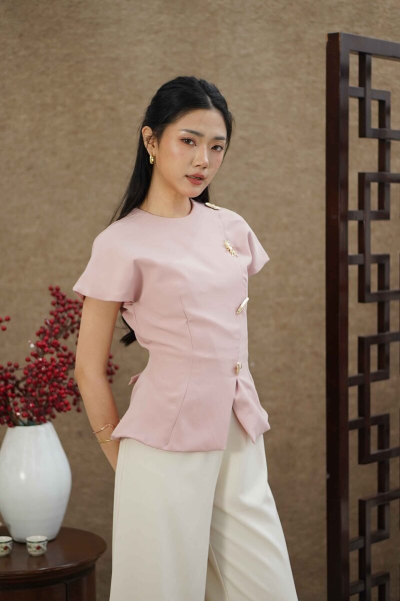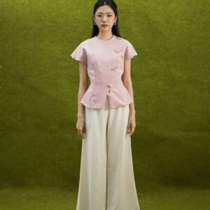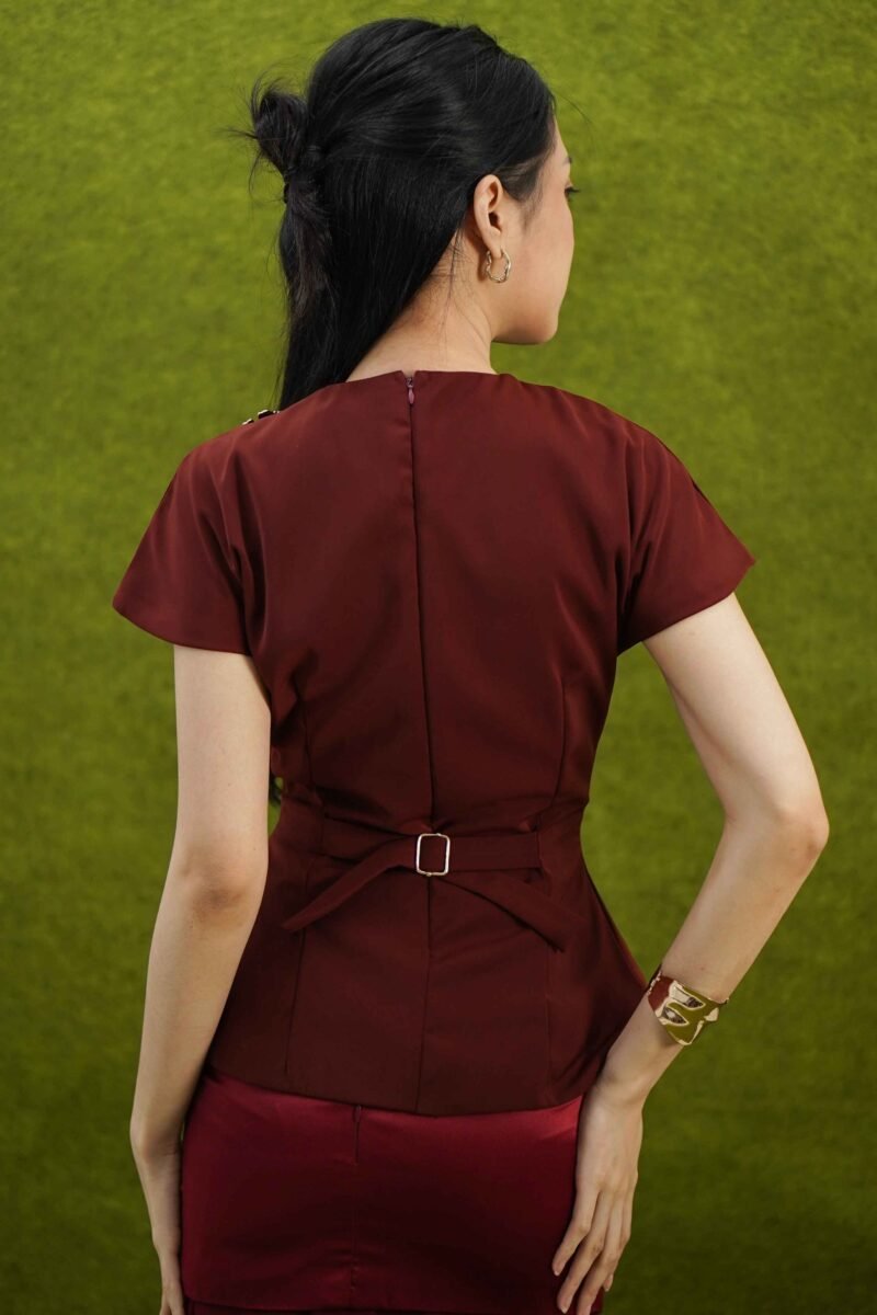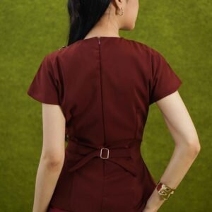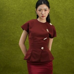 This elegant top is crafted from ivory semiwool that is smooth and falls perfectly, giving it a clean and luxurious look. The design features a cut that gracefully shapes the silhouette of the body, supported by straps at the back to adjust the fit as desired.