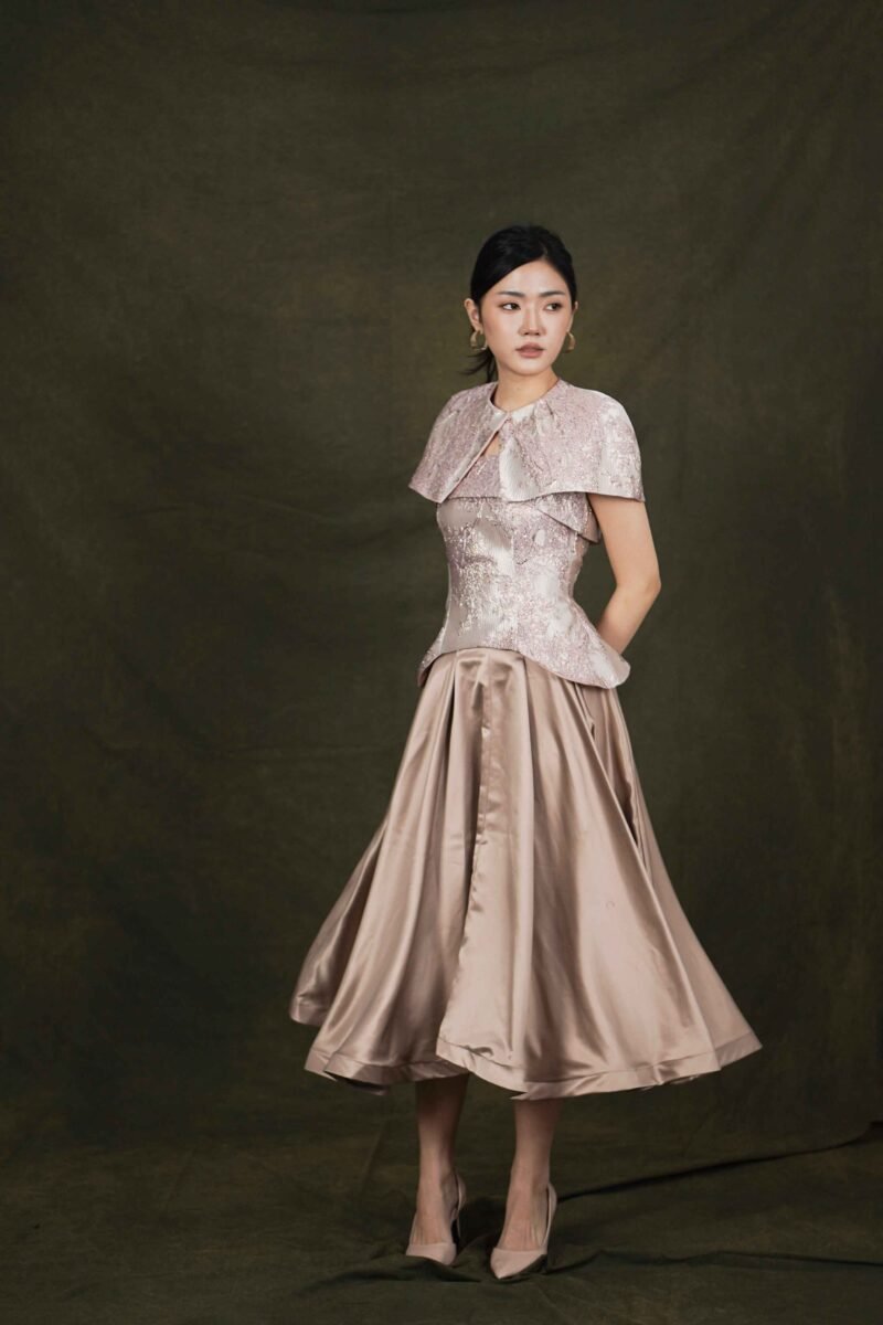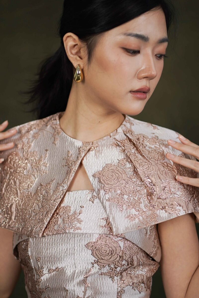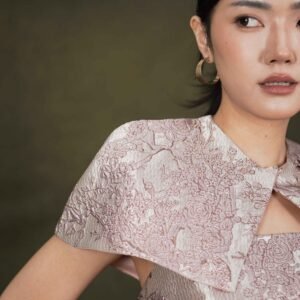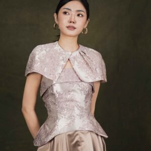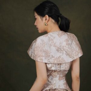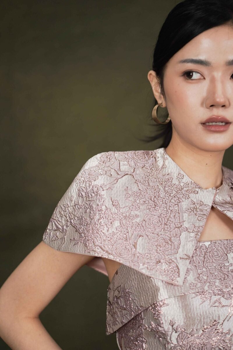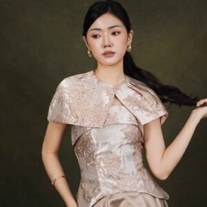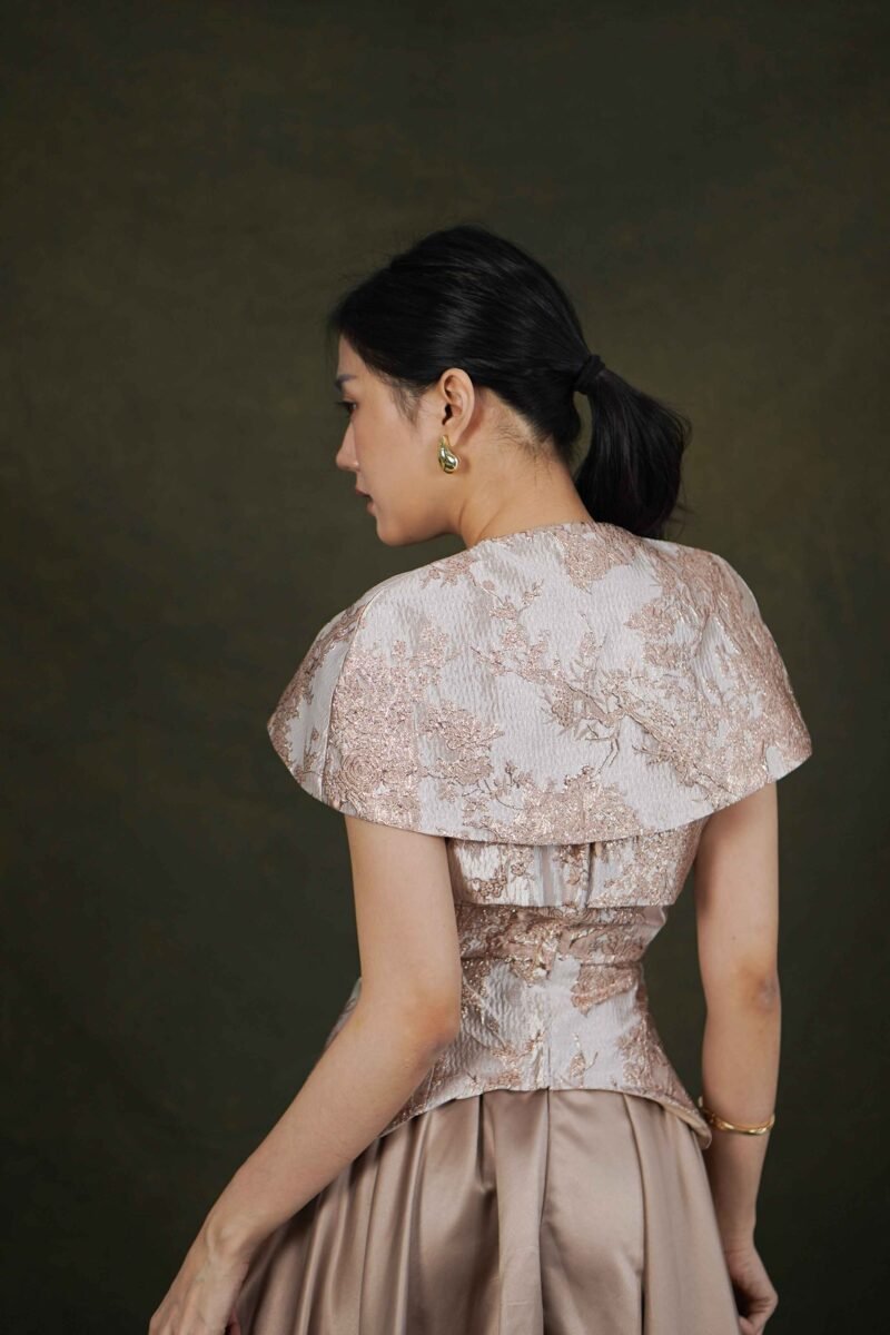 This top features an elegant design with a modern oriental touch, highlighting its luxurious character and strong statement look.